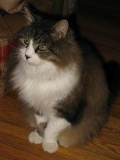 Sad. My mom's cat had to be euthanized today. Sidney was a great cat. He started out in North Carolina at my sister's neighbor's house. They moved away and Sid became theirs. Very much an outdoor cat, but very very loving and needful of affection. When my sister moved into an apartment where they couldn't have cats, Sid moved in with my mom. He squeaked - he didn't meow. And lovvveed to be combed. Especially by my brother, who looked like he was abusing the poor cat, but he was just getting fur out. Eventually Sid got really spoiled - when he got used to my nieces, they would pet him as he ate, and so he got used to that, and would look up at you waiting for you to pet him so he could eat. My mom loved him so much, and he was someone she could take care of and spend time with - even if he was spoiled. We all will miss him very much, but nooone as much as my mom. I hope she does ok. But he lived a long good life - we think he was over 20 years old. He just couldn't go on.